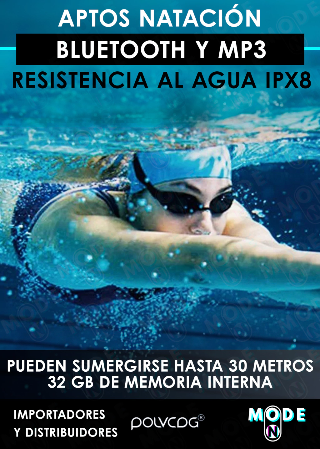 Auriculares impermeables IPX8 Permiten nadar a 30 metros de profundidad.
